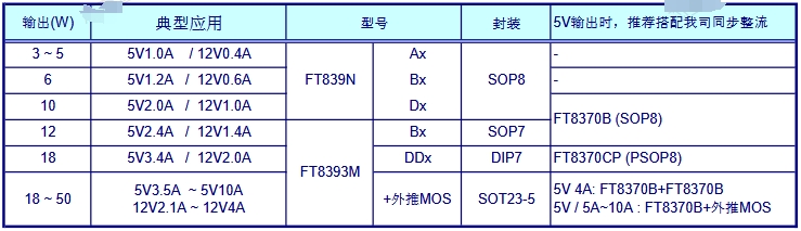 FT8393M系列:提供5V3.4A和12V2.0A的輸出,推薦搭配FT8370CP進行同步整流。