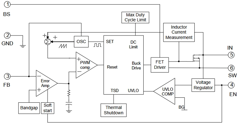 多重保護功能:包括過熱關斷、輸入欠壓保護、BS欠壓保護和短路保護,確保芯片和系統(tǒng)的安全。