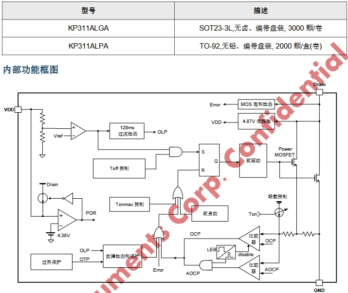 KP311ALGA以其高精度5V默認輸出、集成500V高壓MOSFET和高壓啟動電路、超低待機功耗小于50mW等特點,在小家電電源和輔助電源等領域有著廣泛的應用。了解其引腳功能和電壓參數對于確保電路設計的安全性和可靠性至關重要。通過上述詳細的參數介紹,工程師可以更好地利用KP311ALGA實現高效、穩定的電源管理。
