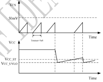 當(dāng)VCC電壓超過(guò)設(shè)定的過(guò)壓閾值(通常為55V至59.5V)時(shí),LP8776AH會(huì)觸發(fā)過(guò)壓保護(hù)機(jī)制。此時(shí),芯片將停止輸出PWM信號(hào),防止因過(guò)高的電壓對(duì)芯片內(nèi)部電路和外部設(shè)備造成損害。過(guò)壓保護(hù)功能為芯片提供了一個(gè)安全的工作電壓范圍,確保其在電源電壓異常升高時(shí)能夠及時(shí)采取保護(hù)措施。
