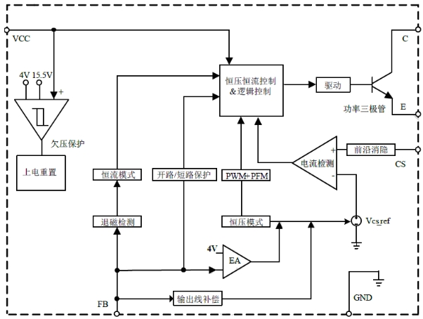 高效率:采用準諧振(QR)模式和脈沖頻率調制(PFM)技術,能夠在不同負載條件下實現高效率的電能轉換,提高電源的整體效率。