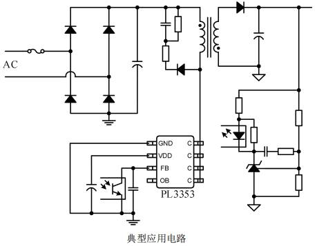 PL3353 同時具有多種保護功能:VDD 欠壓保護、逐周期峰值電流檢測、輸出短路保護和過溫保護等。