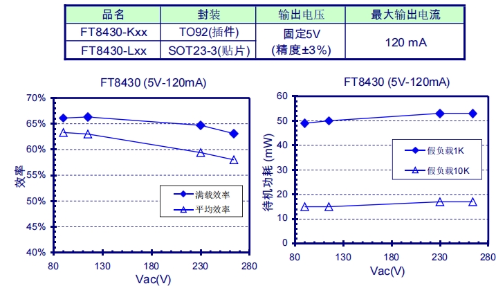 FT8430是一款AC-DC BUCK芯片,專為恒壓5V輸出設計。它在不同輸入電壓下的性能表現非常出色。在90V輸入時,平均效率達到63.3%,滿載效率為66.1%;而在264V輸入時,平均效率為58.0%,滿載效率為63.1%。這種高效的能源轉換能力使得FT8430在各種應用場景中都能保持良好的性能表現。
