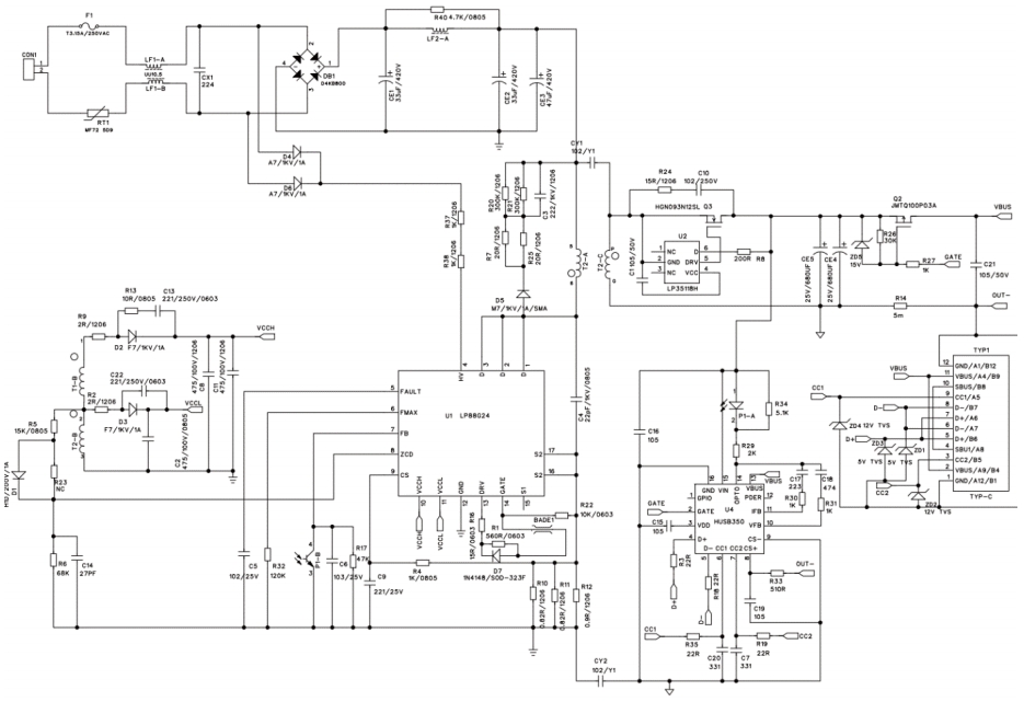 在這一背景下,芯茂微電子憑借其在電源管理芯片領域的深厚技術積累和創(chuàng)新能力,推出了合封氮化鎵LP88G24DCD的PD65W適配器參考設計。這一設計充分展現(xiàn)了GaN技術的優(yōu)勢,同時也體現(xiàn)了芯茂微電子在電源管理芯片設計上的先進理念。