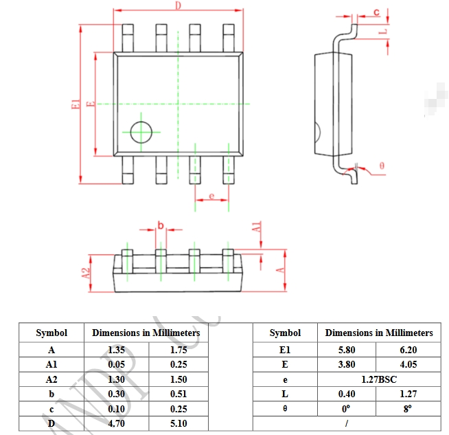 LP3610S 采用 SOP8L 封裝形式,這種封裝不僅尺寸緊湊,而且具有良好的散熱性能和電氣特性。封裝的詳細(xì)尺寸信息如下