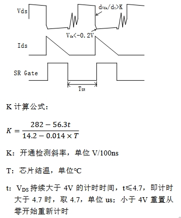 關(guān)斷條件:同步整流一旦開(kāi)通,在比較器屏蔽時(shí)間 Tb 內(nèi)不進(jìn)行關(guān)斷動(dòng)作。當(dāng) Ton>Tb&The Vds voltage >-5mV,關(guān)斷同步。