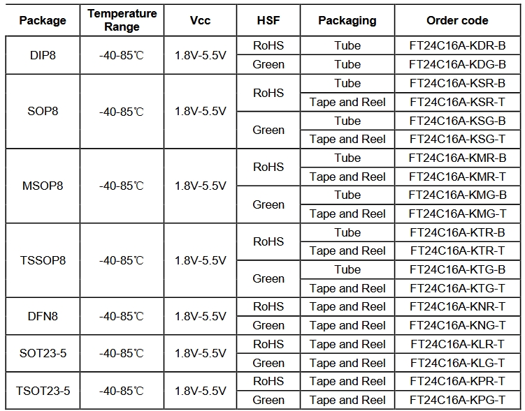 FT24C16A-KLR提供5引腳SOT-23封裝,滿足不同設(shè)計(jì)需求。