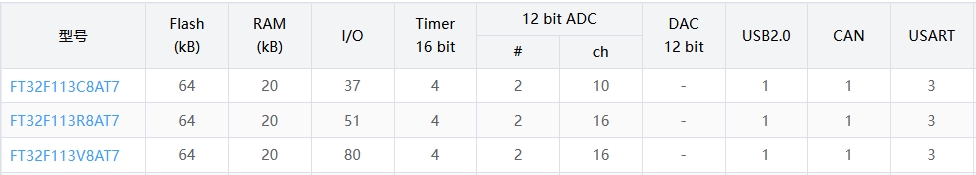 型號:FT32F113CBAT7/FT32F103CBAT7, FT32F113RBAT7/FT32F103RBAT7, FT32F113VBAT7/ FT32F103RBAT7