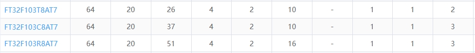 型號:FT32F113C8AT7/FT32F103C8AT7, FT32F103R8AT7/FT32F113R8AT7, FT32F113V8AT7