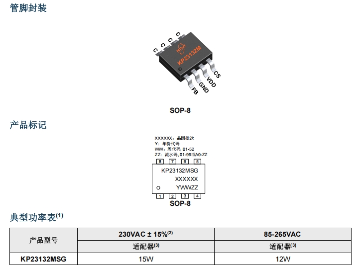 確認(rèn)功率 ≤ 12 W → KP23132MSGA(SOP-8)