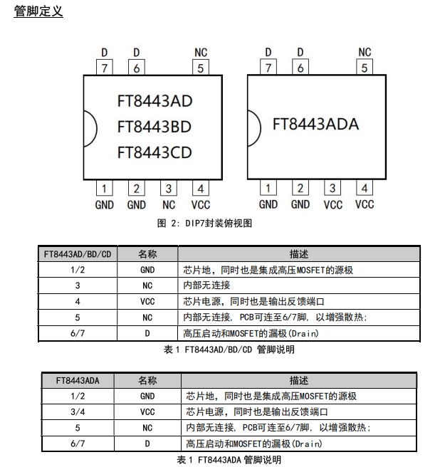 ? FT8443ADA:入門款,300 mA 穩(wěn)態(tài)輸出,650 V 內(nèi)置 MOS,DIP-7 散熱焊盤小,適合小家電、智能開(kāi)關(guān)等成本敏感場(chǎng)景。