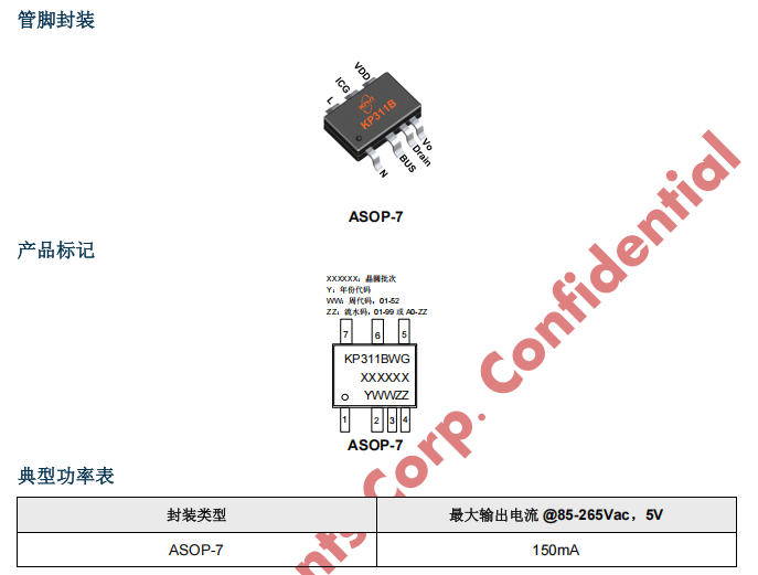 在小家電和輔助電源領(lǐng)域,工程師們常常面臨一個挑戰(zhàn):如何在有限的空間和預(yù)算內(nèi),實現(xiàn)高效、穩(wěn)定的電源設(shè)計。傳統(tǒng)方案往往需要多個分立元件,不僅增加了成本,還提高了設(shè)計的復(fù)雜性。必易推出的 KP311BWGA,以其高性能、低成本和高集成度,為這一挑戰(zhàn)提供了一個全新的解決方案。這款芯片將 500 V 高壓 MOSFET、續(xù)流二極管、高壓啟動電路和采樣電阻集成在一個 ASOP-7 封裝中,不僅簡化了設(shè)計,還顯著降低了系統(tǒng)成本和功耗。