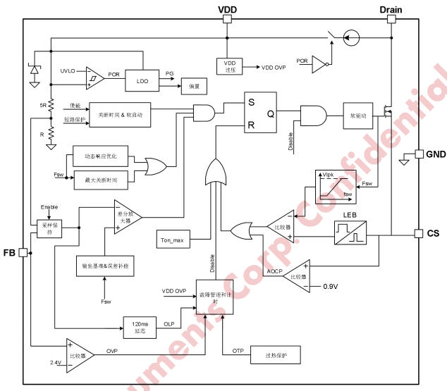 所有型號均內置 500V 高壓 MOSFET、高壓啟動電路、多模式 PWM 控制器,支持 Buck 和 Buck-Boost 拓撲,默認 12V 輸出(FB 腳懸空),待機功耗 <50mW。