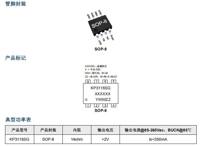 KP3116SGA 的出現(xiàn),讓這三道門檻變成了一條“直線”——因為它把 700 V 功率 MOSFET、高壓啟動、多模式 PWM 控制器全部塞進(jìn)一顆 SOP-8,還順手把“固定時鐘”拿掉了。