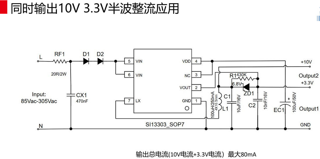 把220V交流變成3.3V或5V,還能塞進指尖大小的空間,并且待機功耗低于一顆LED,是什么體驗?SI13303/SI13305這對SOP-7封裝的“非隔離降壓兄弟”把高壓MOSFET、過零檢測、過溫/過壓/限流保護全部集成在一顆芯片里,外圍僅需5顆通用料即可工作,被工程師戲稱為“史上最省事的市電電源”。