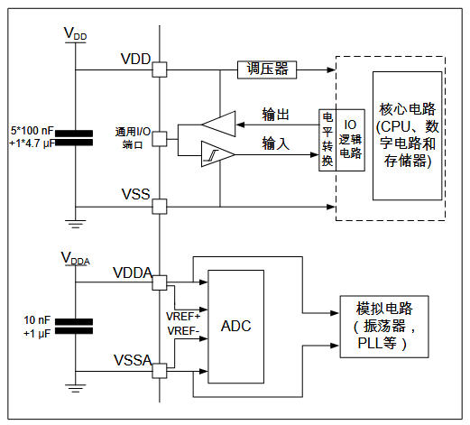 → 采樣時間 < 0.5 μs,RAIN > 10 kΩ,按公式重新算 Ts;同時把 VDDA 與 VDD 用 0 Ω 電阻單點連接。