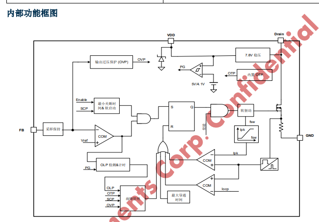 KP3116 集成有完備的帶自恢復功能的保護功能: VDD 欠壓保護、逐周期電流限制、異常過流保護、輸出過壓保護、過熱保護、過載保護和 VDD 過壓保護等。