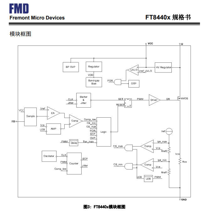FT8440E采用超高壓工藝,內(nèi)部集成高壓?jiǎn)?dòng)電路,高壓功率開(kāi)關(guān),以及電流采樣電阻,減少了外部元器件,極大地簡(jiǎn)化了系統(tǒng)應(yīng)用。內(nèi)置的頻率抖動(dòng)和軟驅(qū)動(dòng)設(shè)計(jì)能有效提高EMI性能。