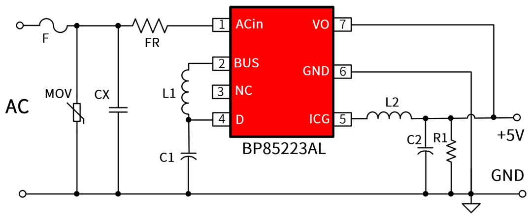 BP85223AL 提供了豐富的保護功能,包括反饋開路、輸出過載保護、逐周期限流、過溫保護等,使系統更加安全可靠。BP85223AL 采用ASOP-7封裝。