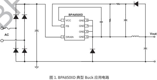 BPA8505D 系列芯片是一款高性能、高集成度、低待機(jī)功耗的開關(guān)電源驅(qū)動芯片,適用于全電壓 85~265VAC 輸入的Buck、Buck-Boost、 Flyback 等變換器拓?fù)鋺?yīng)用。 BPA8505D 系列芯片內(nèi)部集成了 650V 高壓 MOSFET、高壓啟動和自供電電路、電流采樣電路,以及采用先進(jìn)的控制技術(shù),無需外部環(huán)路補(bǔ)償即可實(shí)現(xiàn)優(yōu)異的恒壓輸出特性,極大地減少了外圍器件數(shù)量,節(jié)省了系統(tǒng)成本和體積,同時(shí)提高了可靠性。