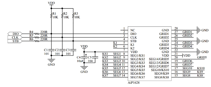 串行接口(CLK,STB, DIO)