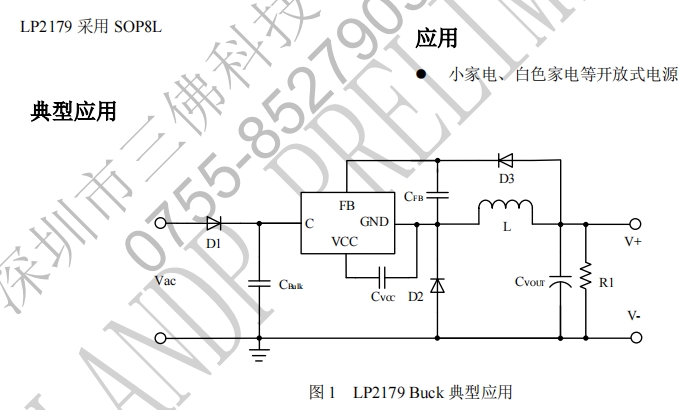 LP2178是一款高效率、高精度的非隔離降壓開關(guān)電源恒壓控制驅(qū)動芯片。它適用于85VAC至265VAC全范圍輸入電壓,尤其適用于小家電、白色家電等電源的驅(qū)動。LP2178內(nèi)部集成高壓功率管,并采用恒壓控制模式,系統(tǒng)可工作于CCM和DCM模式。它還具有多重保護(hù)功能,包括VCC鉗位/欠壓保護(hù),輸出短路保護(hù)、電感過電流保護(hù)及過溫保護(hù)等。
