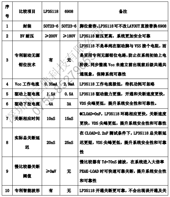 綜上所述,LP35118不僅完全兼容MP6908,而且還提供了多項額外的優(yōu)勢,包括高耐壓、快速關(guān)斷、集成VCC供電技術(shù)、整流管開通判定技術(shù)、多種工作模式兼容、外部元器件少以及過壓鉗位和欠壓保護(hù)。這些特性使得LP35118成為一個強大的替代選項,能夠在保持與MP6908兼容性的同時,提供更高的性能和可靠性。