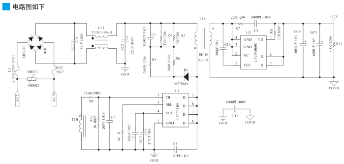 輔助電路包括輸入濾波、輸出濾波、反饋控制和保護電路。輸入濾波電路用于減少輸入電壓的波動,輸出濾波電路則用于平滑輸出電壓,提高電源的穩定性。反饋控制電路確保輸出電壓的精確調節,而保護電路則包括過流、過壓和短路保護,保障電源的安全性。