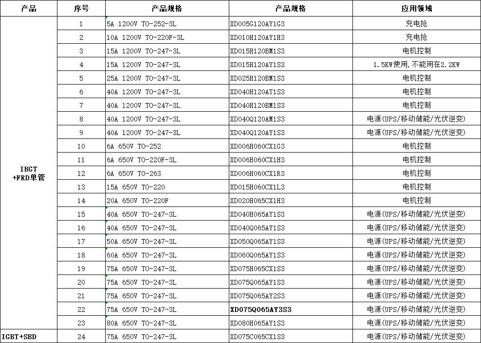 XD075Q065AY3S3 芯達茂國產IBGT +FRD單管75A 650V TO-247-3L  ,應用:電源(UPS/移動儲能/光伏逆變)