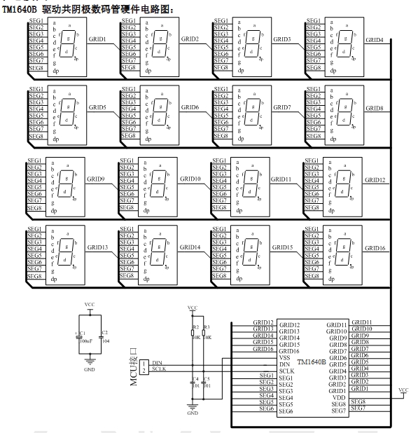 在計(jì)數(shù)應(yīng)用中,微控制器可以根據(jù)外部事件或內(nèi)部計(jì)數(shù)器的值,通過(guò)TM1640B芯片顯示當(dāng)前計(jì)數(shù)值。
