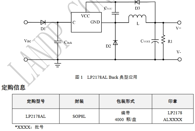 根據上述對比,LP2178AL和LP2178A在封裝類型、保護功能、動態性能與EMI特性以及待機功耗方面具有相似的特性。主要的區別在于它們的輸出電流能力,LP2178A明確指出在特定條件下的輸出電流能力為≤200mA,而LP2178AL的具體輸出電流能力為≤100mA。